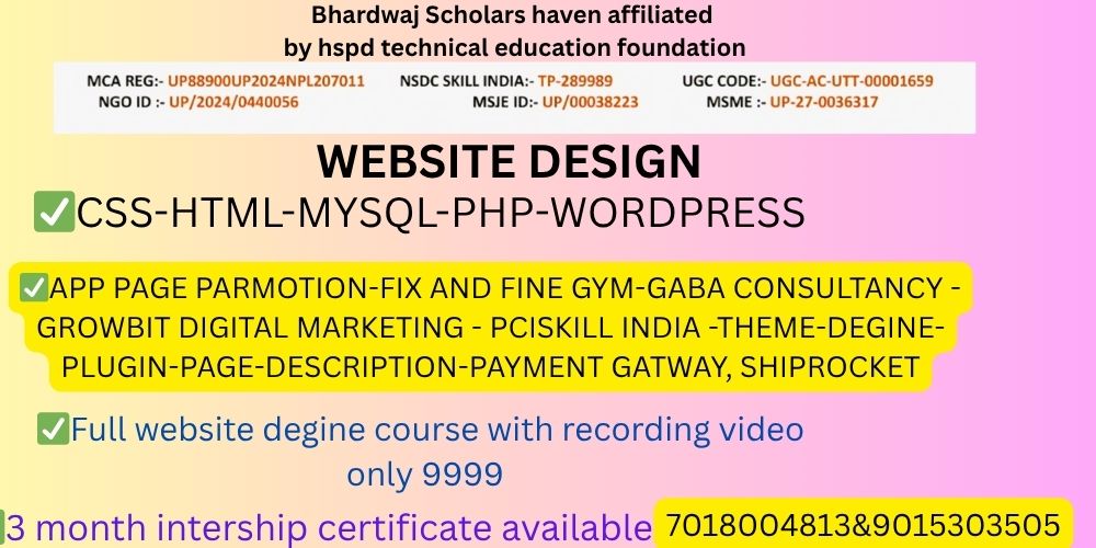 100% accuracy and placement this course https://wa.me/917018004813 Dipolma in web degine course available only online recording video base and offline