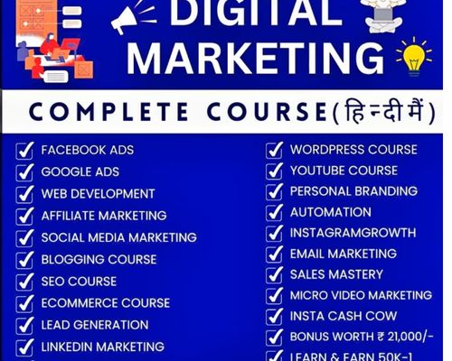 Digital marketing course available recording video base course duration 3 month intership and placement available course fees 9999 after complete course placement and valid diploma available