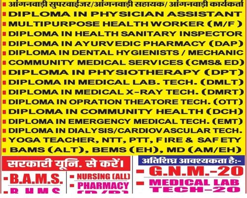 CMSED AND EMT COURSE WITH 1 FEES ALL INDIA PARAMEDICAL COUNCIL CONDUCTED,MHRD,QCI available,course mode online , regular , distance and all india valid and available course nct aproval,nsdc ,skill india,aicte intership, iso,iao, niti ayog,darpan , ministry of human development, all trades valid pvt and govt sector . Course fees 22500 yearly and course duration 1& 2 years . Job placement and intership available .